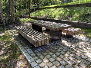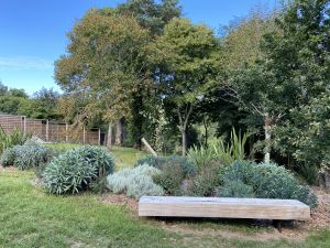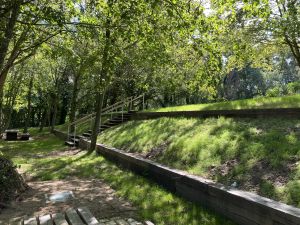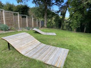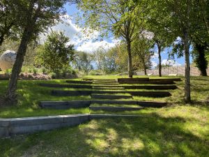 Nos équipes ont réalisé divers massifs de plantations, qui apportent de la couleur à ce parc. Elles ont également confectionné du mobilier tel que des tables de pique-nique en chêne et acier corten ou des transats. La réalisation d’une plateforme en débord offrant un point de vue, fait également partie des ouvrages réalisés par nos équipes.